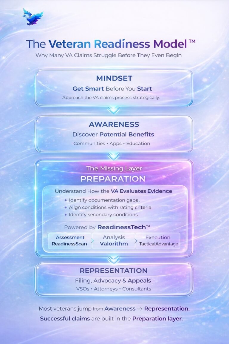 Through TacticalAdvantage™ education frameworks and ReadinessPass™ workspace tools, you prepare documentation the way the VA evaluates it — with precision, structure, and measurable readiness.
